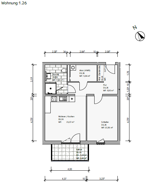 2-Zimmer-Wohnung mit offenem Wohn-/Kochbereich, Badezimmer mit bodentiefer Dusche, Balkon, Abstellraum sowie Parkplatz in der Tiefgarage